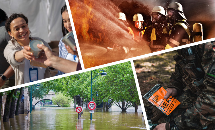 To meet the specific needs of public administrations, NGOs, private companies and emergency services, we offer a tailor-made range of technical and effective food solutions. Whether you need to build up emergency stocks in the event of a crisis, prepare for rapid intervention or support long-term missions, our professional solutions offer the right answer to your operational requirements