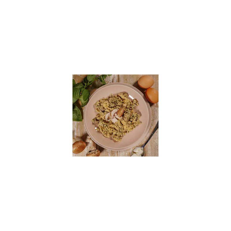 Nomad's Kitchen scrambled eggs with feta, spinach and mushrooms offers: - A traditional recipe prepared in Brittany - Made with natural ingredients only - A 300 g individual serving packed with protein.