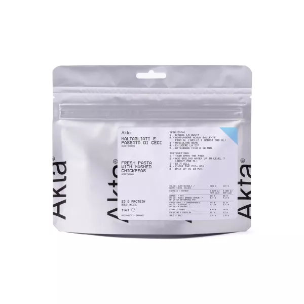 Easy to prepare: simply add 280ml of boiling water directly into the pouch, stir and wait ten minutes for a complete meal. With its zip-lock packaging and water line, it's ideal for outdoor activities, travel or any situation requiring a nutritious, quick meal.