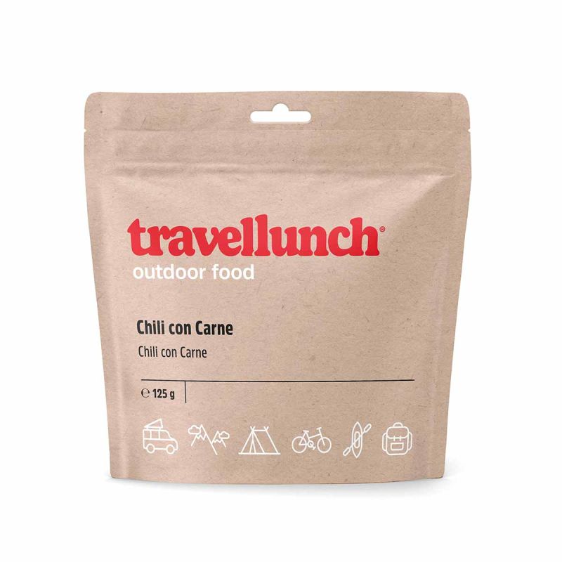 Travellunch's Chili Con Carne is a freeze dried meal rehydrated with hot water directly in the pouch. No container needed to enjoy your freeze dried food, just a long-handled spoon.