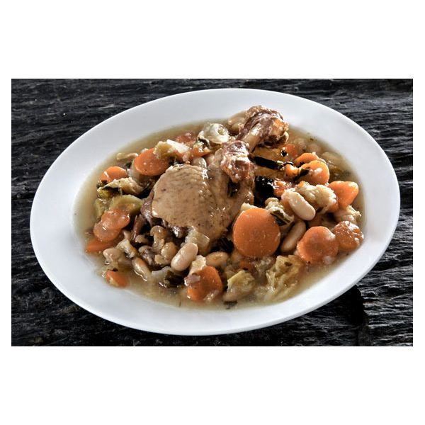 This Garbure has been prepared with natural ingredients: lingot beans, onions, carrots, potatoes, green cabbage, turnips, leeks, Bayonne ham cubes... and the icing on the cake for duck lovers: duck legs!