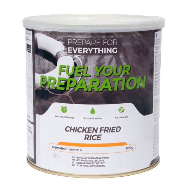 This tin contains 8 portions of the Chicken, Fried Rice and Vegetables Asian recipe from the Fuel Your Preparation range. This freeze-dried product has been designed for very long-term storage to prepare you for emergency situations for a family or group of people.