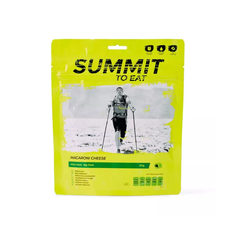 This meal will help you warm up and recharge after a demanding day, thanks to its high carbohydrate content. Enjoy it on your own or share with your partner during outdoor activities—the macaroni cheese is perfect for fuelling up before the next stage of your adventure.